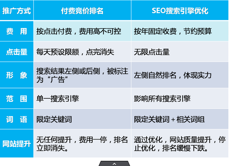 目前几乎所有的企业都在同时做竞价和seo,有时候会更多的采用互补的方式来做sem。对于seo与竞价有哪些区别,下图也有更多的说明。